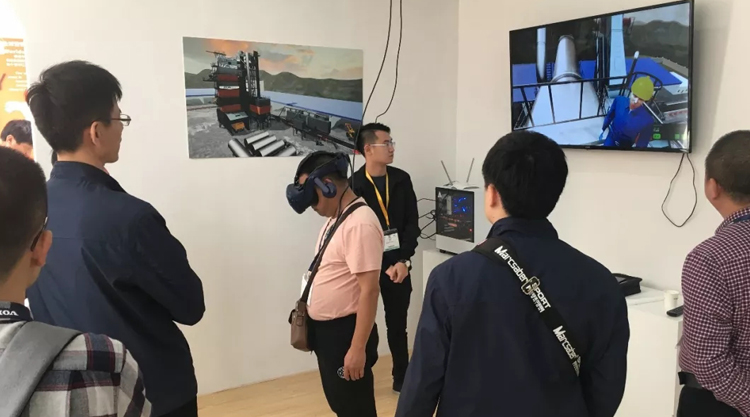展会第一天,铁拓机械VR展区吸引了众多前往展台参观的客户驻足体验,在现场工作人员的帮助下,配套VR头盔,然后开始沉浸在其中。
