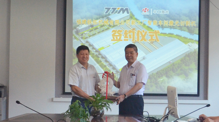签约会上,铁拓机械董事长表示:“这次选择华工激光,看中的就是产品和服务方面的优势。因为我们车间有一台已经用了三年的设备了,所以我们很清楚华工激光产品质量和售后服务。”