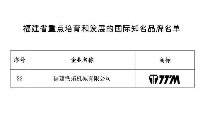 铁拓机械入选“福建省重点培育和发展的国际知名品牌”名单