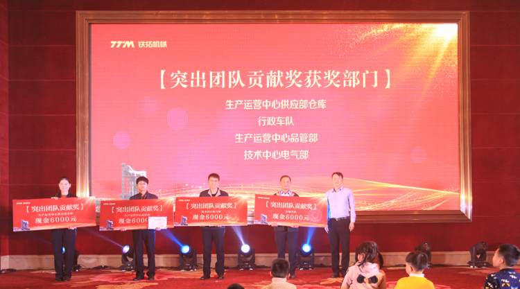 晚宴上,铁拓机械借欢聚时刻特地表彰了获得2018年“突出个人贡献奖”的4位同志和“突出团队贡献奖”的4个团队,并为他们颁发证书及奖金,奖励他们在过去一年,兢兢业业,努力奋斗,为铁拓机械的发展作出重要贡献。的确,铁拓机械作为一个优秀的企业,离不开每一个员工的团结和努力,我们要以榜样为标杆,激励更多员工在新的一年奋发向上,取得更加辉煌的成绩。