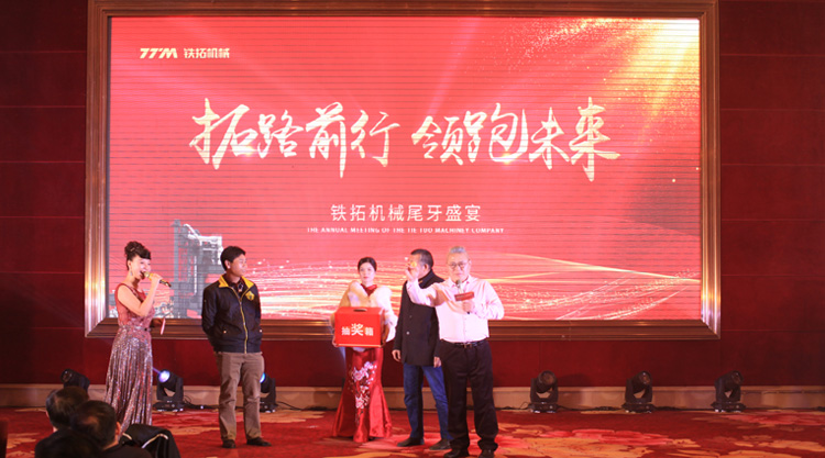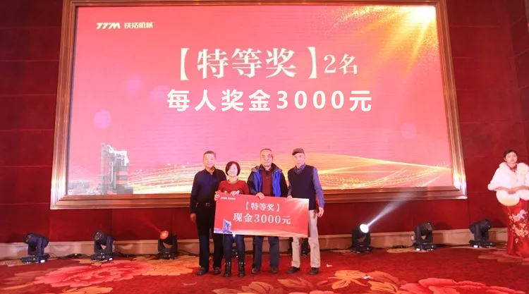 气氛正浓,精彩节目和抽奖环节成为晚宴亮点。为了感谢全体员工一年的辛苦努力和付出,感谢供应商伙伴、客户及社会各界朋友的支持与信赖,铁拓机械拿出近20万元的现金奖金进行现场抽奖,奖金从100元到3000元不等,奖项总计700多个,不仅中奖率高,而且奖金丰厚,不少员工、用户代表重复中奖,奖金叠加,满载而归。