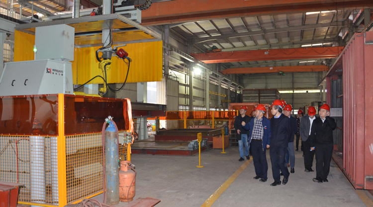 在考察调研过程中,一行领导参观了公司国家级“服务型制造示范项目”——沥青混合料搅拌远程服务系统平台技术研发及应用,了解控制中心对工地设备进行远程服务的过程。随后,一行领导又深入走访车间,对新年后公司订单销售及生产运营情况进行调研。