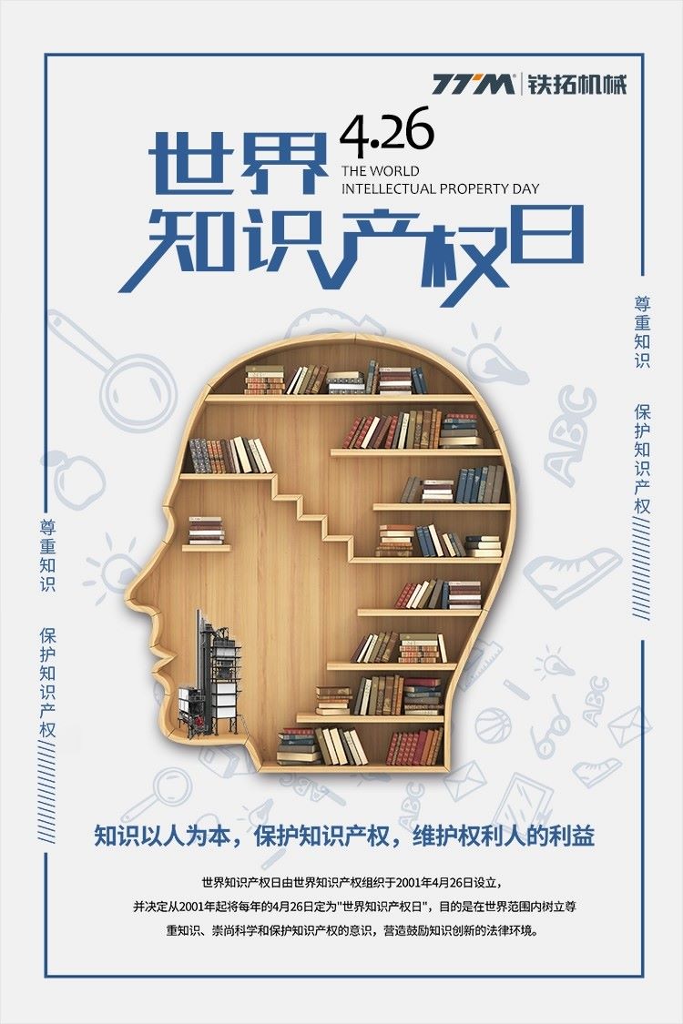 返回列表 26 2022-04 世界知识产权日 | 知识以人为本 保护知识产权 2022-04-26 访问量:2552 访问类型:公司新闻 字号 A- A A+ 上一条 深入探索 至臻至精 | 记铁拓机械沥青厂拌热再生系列产品 2022.04.29 下一条 铁拓机械5G智能改造项目受评为工信部“2021年中小企业数字化转型典型案例” 2022.04.26