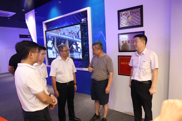之后,一行领导在王董及高总的带领下参观了铁拓机械智能化生产车间。铁拓机械主动顺应信息化与工业化融合的发展趋势,积极进行自动化、数字化产线升级。