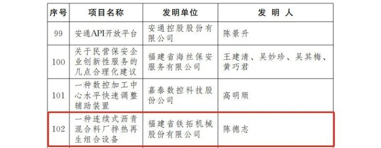 铁拓机械技术研发工程师陈德志,凭借“一种连续式沥青混合料厂拌热再生组合设备”,荣获“五小” 创新大赛一等奖。