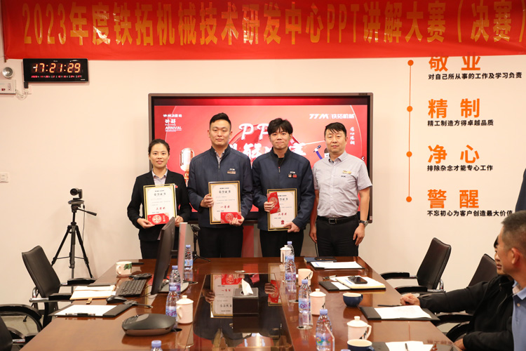 本次参赛人员多为技术研发中心新生代的年轻骨干,他们除了具备扎实的专业知识,还有敢于争先的活力。新生代技术骨干们继承发扬了“铁意精诚拓展无限”的创新进取精神,充分展示了自己的才华和表达能力。评委们对选手们的表现也给予了高度评价。他们认为,选手们的演讲内容丰富、思路清晰,表达能力强,展现了铁拓机械技术研发团队的底蕴和潜力。同时也帮选手们指出了不足,让参赛成员受益匪浅。