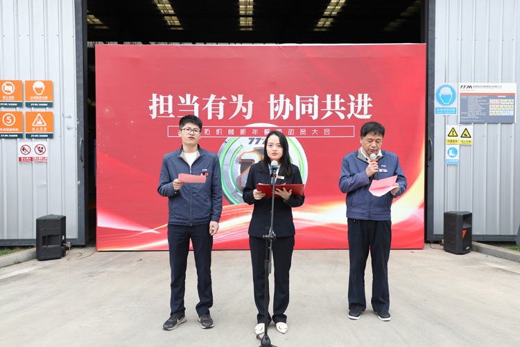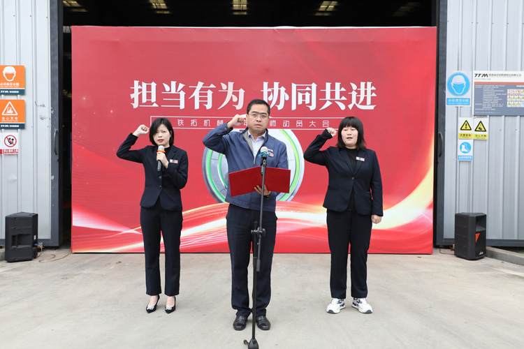 以责任为旗,团结为路,奋发向上正当时!为进一步鼓舞全体员工用更高的标准,更出色的品质,以适应不断变化和发展的客户需求,实现"为客户创造最大价值"的公司使命,铁拓机械于2月22日隆重举行"担当有为·协同共进"为主题的新年誓师动员大会,激励全体员工群策群力,奋勇前进。
