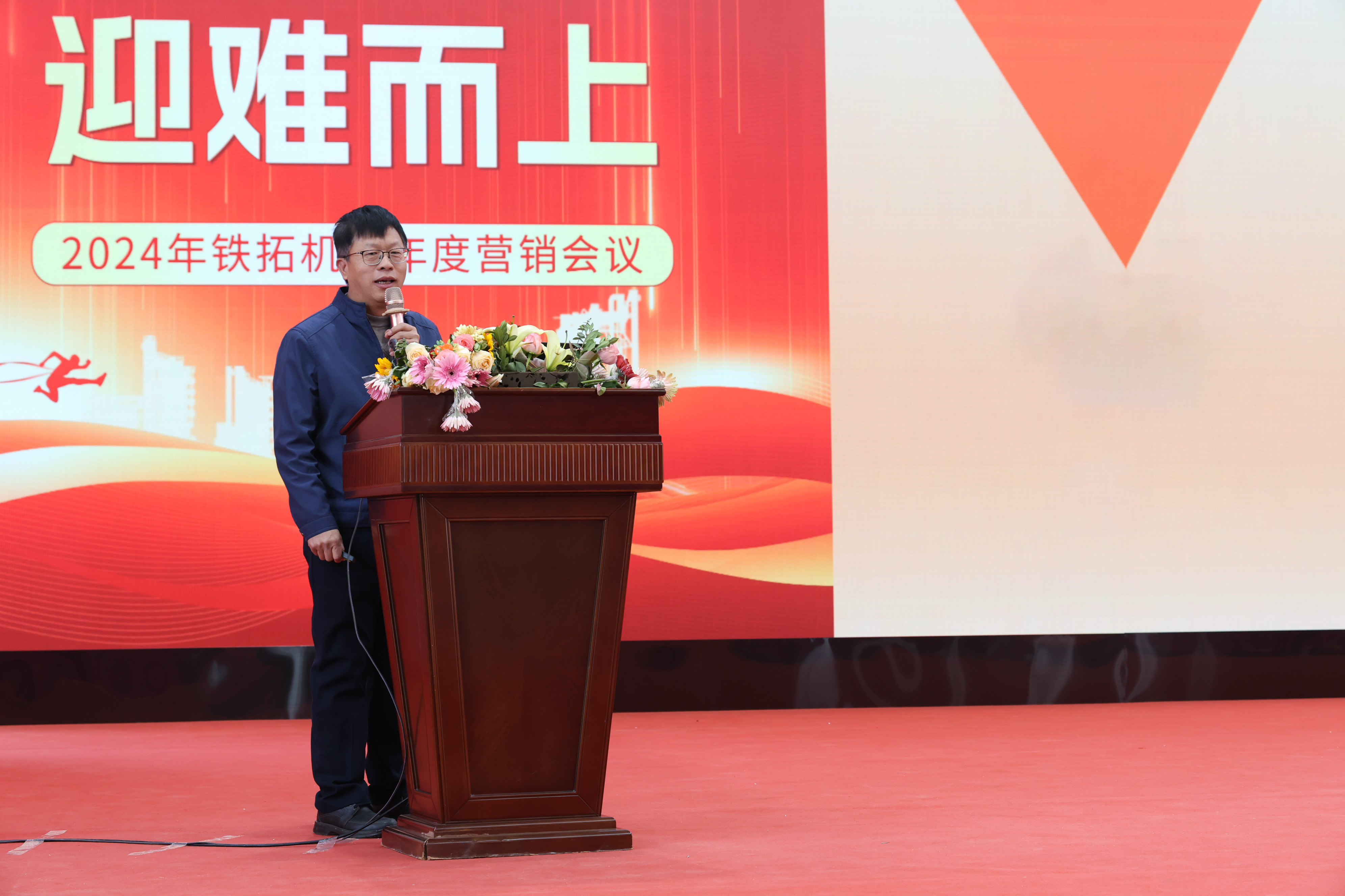 大会伊始,铁拓机械总经理高岱乐发表年会致辞。首先他肯定了营销人员过去一年辛勤的努力。在行业低迷的市场环境下,营销团队凭借敏锐的市场洞察力和坚韧不拔的毅力,成功开拓了多个关键市场,取得了显著成绩。同时,他还深刻指出,在当前瞬息万变的市场环境中,行业竞争日益激烈,技术革新不断加速,唯有不断创新,严格把控产品品质,公司才能在激烈的竞争中立于不败之地。面对这些挑战,铁拓机械的营销团队必须“应势而动”,紧跟市场趋势,优化营销策略,提升客户服务水平。