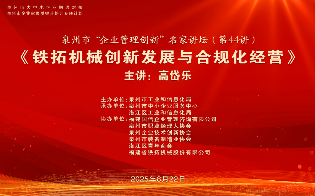 8月22日下午,由泉州市工业和信息化局主办,泉州市中小企业服务中心与洛江区工业和信息化局承办,福建国信企业管理咨询有限公司、泉州市职业经理人协会、泉州企业技术创新协会、泉州市装备制造业协会、洛江区青年商会与特级丰满少妇一级AAAA爱毛片-国产亚洲av午夜在线观看-颜射内射巨乳人妻-国产A√无码专区-汤唯《色戒》未删减版电影协办的泉州市“企业管理创新”名家讲坛第四十四讲,在铁拓机械隆重举行。