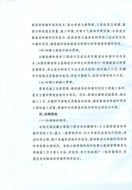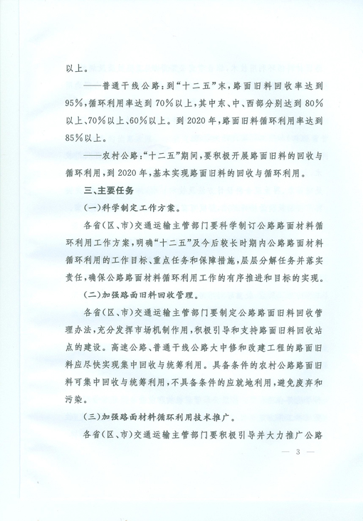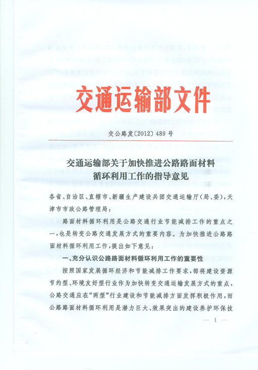 返回列表 17 2012-12 交通运输部关于加快推进公路路面材料循环利用工作的指导意见 2012-12-17 访问量:6654 访问类型:专题报道 字号 A- A A+ 转载于中国人民共和国交通运输部官网 上一条 铁拓机械“三不”技术助力云南高速“再生” 2012.12.25 下一条 2012上海宝马展:铁拓“小强人”搏击大市场 2012.12.15